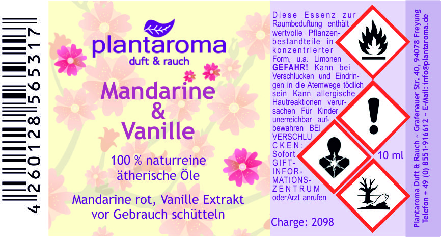 | Zutaten: | Mandarine rot und Vanille Extrakt |