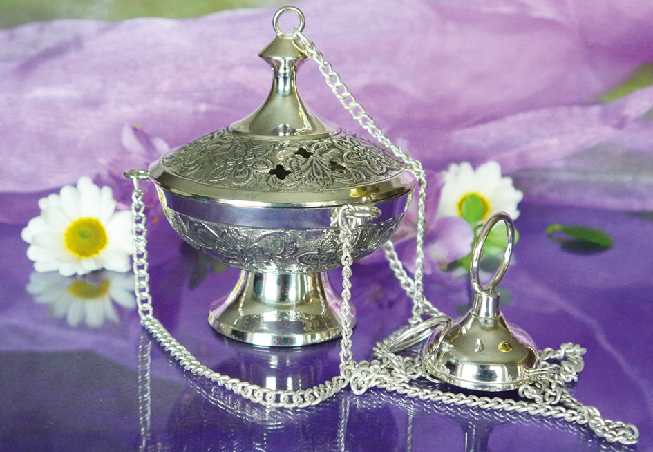 Weihrauchschwenker - Messing versilbert mit Kette 25 cm